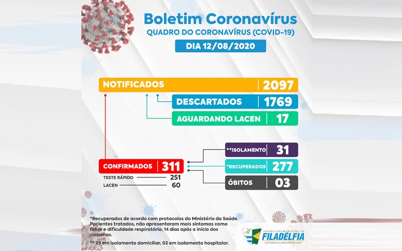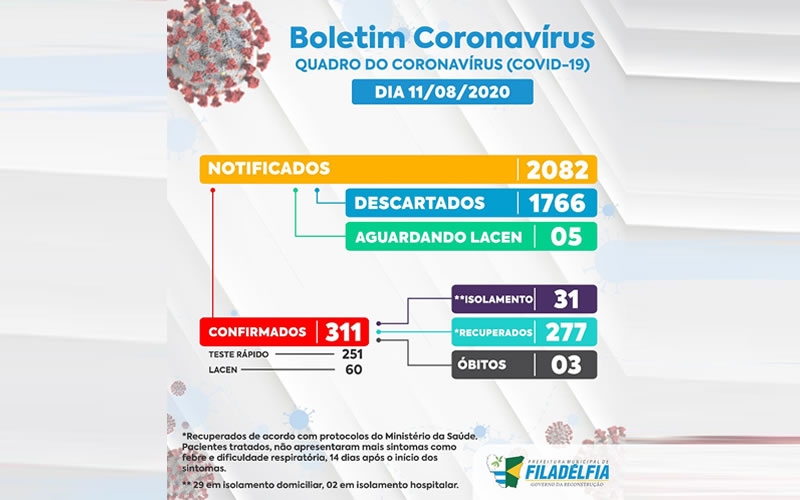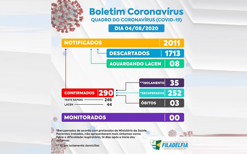 A Prefeitura de Filadélfia através da Secretaria Municipal de Saúde, registrou 04 casos de Coronaví...
