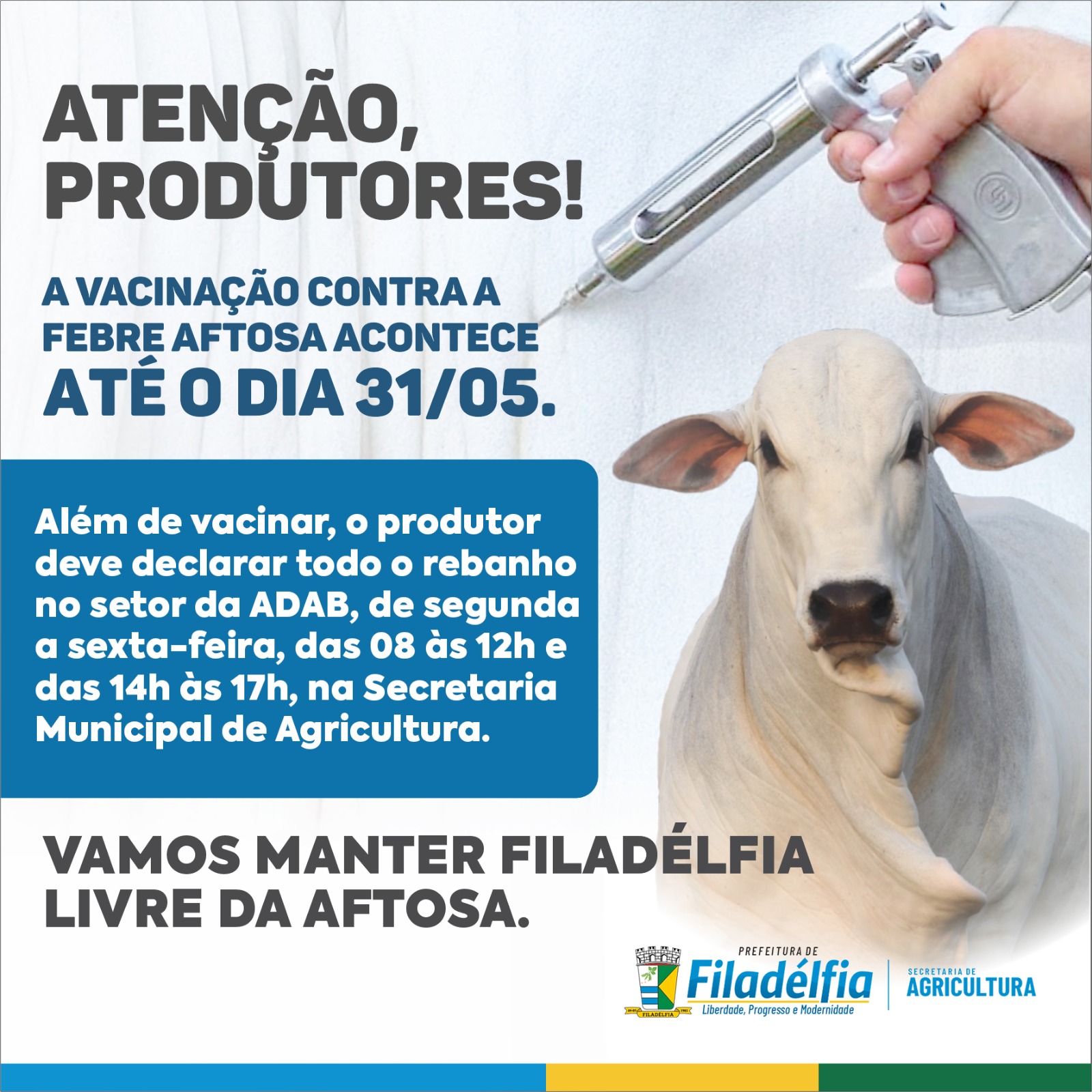 Se todos fizerem a sua parte, Filadélfia vai continuar protegida da Aftosa.