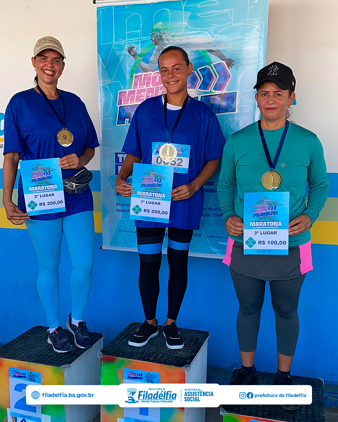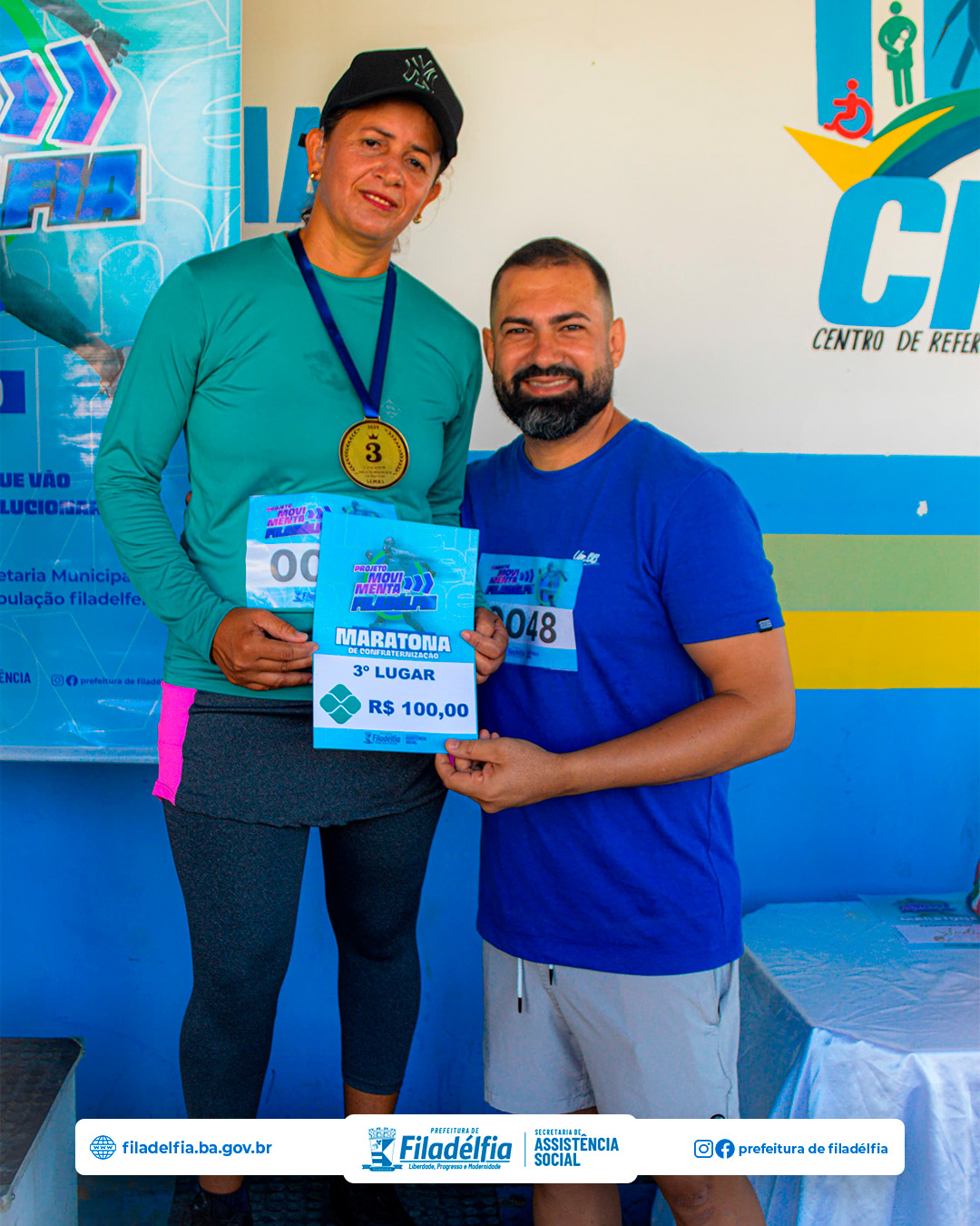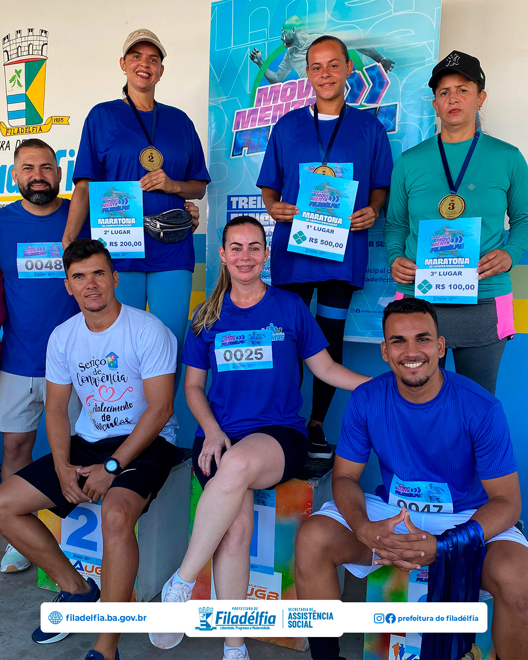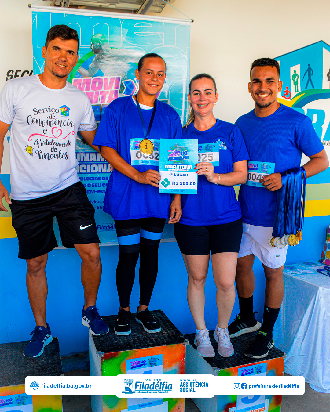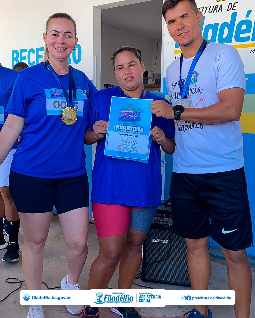 A secretária de Assistência Social, Karyne Carneiro, destacou a importância do evento: “A Maratona de Confraternização do projeto Movimenta Filadélfia não só incentiva a prática de atividades físicas, mas também fortalece os laços comunitários. Estamos muito felizes com a participação de todos e com o sucesso do evento. É gratificante ver a alegria e o entusiasmo de cada participante.”