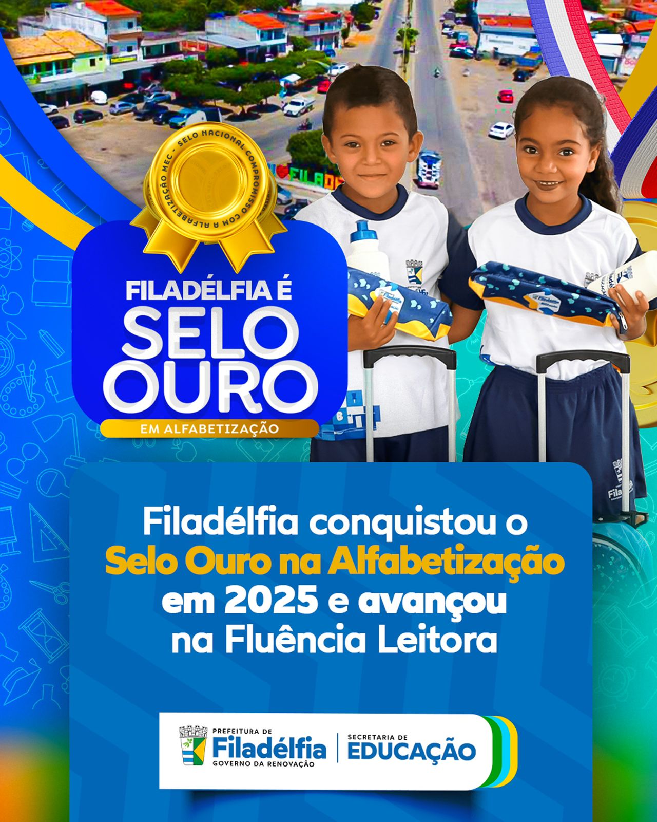 Filadélfia alcançou um importante reconhecimento nacional ao conquistar o Selo Ouro na Alfabetização – 2025, concedido no âmbito do Compromisso Nacional Criança Alfabetizada. A certificação reafirma o compromisso do município com a educação pública de qualidade e com a garantia do direito de aprender na idade certa.